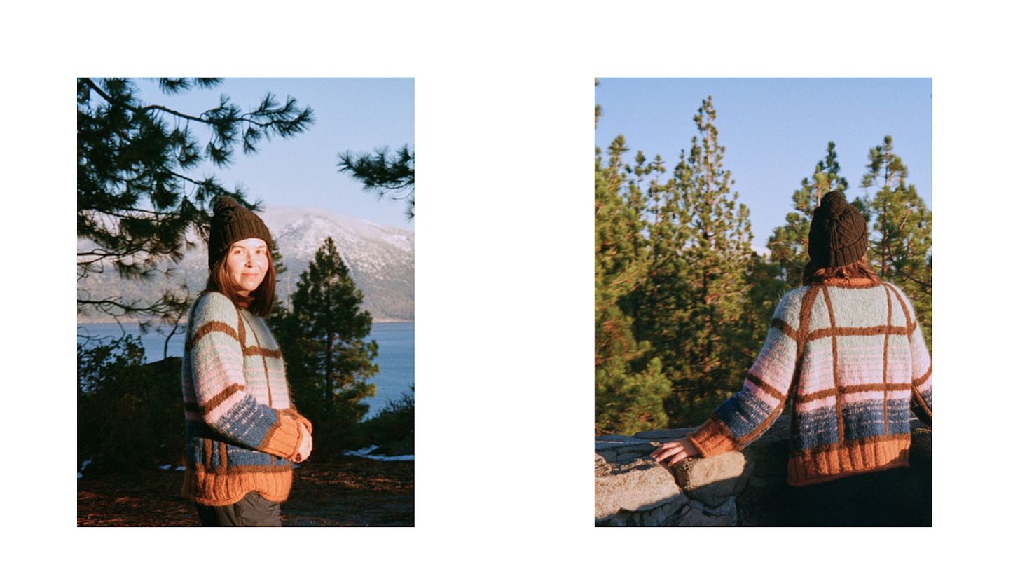 I’ve started getting into colorwork this year, and it’s completely changed how I think about knitting. Incorporating color feels like opening a whole new dimension of creating interesting fabrics and motifs. It’s such a fun way to bring bold designs to life, and as a designer I love how it lets knitters customize a piece to reflect their own interests. For example, my upcoming Cabin Window Sweater shows a lake through a cabin window—but with different colors, that same scene can become a meadow of flowers, a snowy field, or even a vast desert. Colorwork has really shifted how I look at my yarn stash and what I can create with it!
